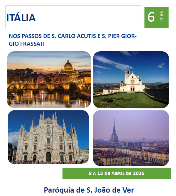 Estão abertas as inscrições para a viagem paroquial a ITÁLIA - Roma, Assis, Bolonha, Turim e Milão.