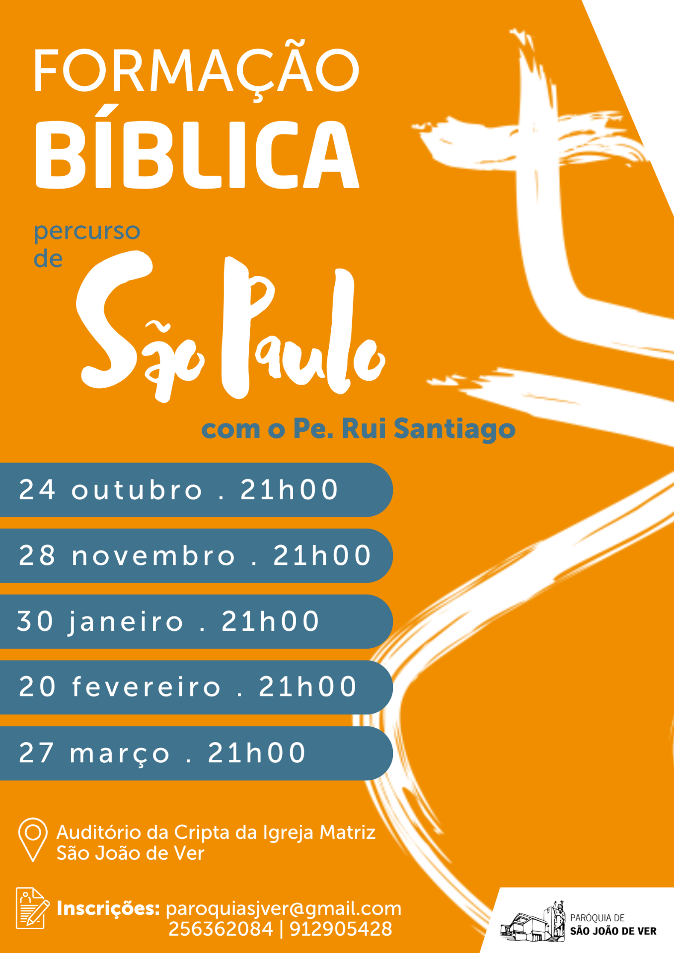 A Paróquia de São João de Ver volta a promover mais um ciclo de Formação Bíblica para agentes da pastoral, nomeadamente: Catequistas, Leitores, Grupos de Lectio Divina, Ministros Extraordinários da Comunhão, Pastoral dos Sacramentos e comunidade em geral.